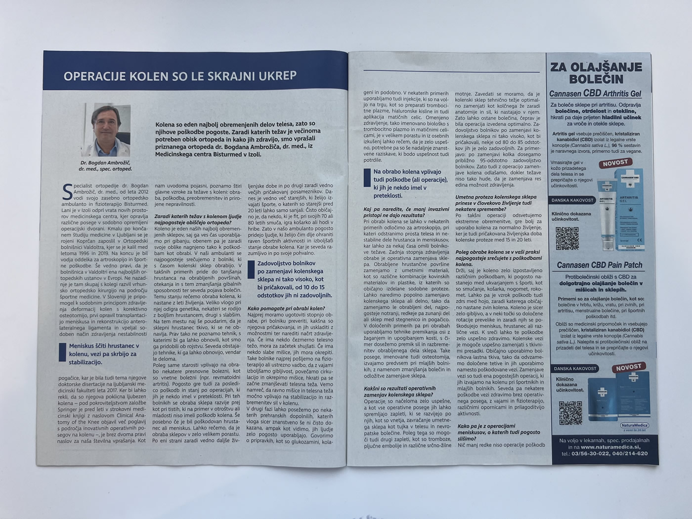 Dr. Bogdan Ambrožič o zdravljenju kolena v junijski prilogi Dela: Operacije kolen so le skrajni ukrep
